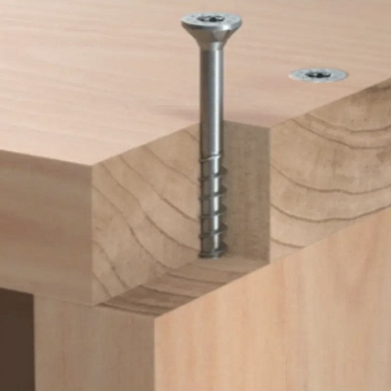 Universelle Teilgewindeschraube zur schnellen, spaltfreien Befestigung von Holz-Holz-Verbindungen im Möbelbau, Innenausbau oder Holzbau im trockenen Innen- oder Feuchtbereich